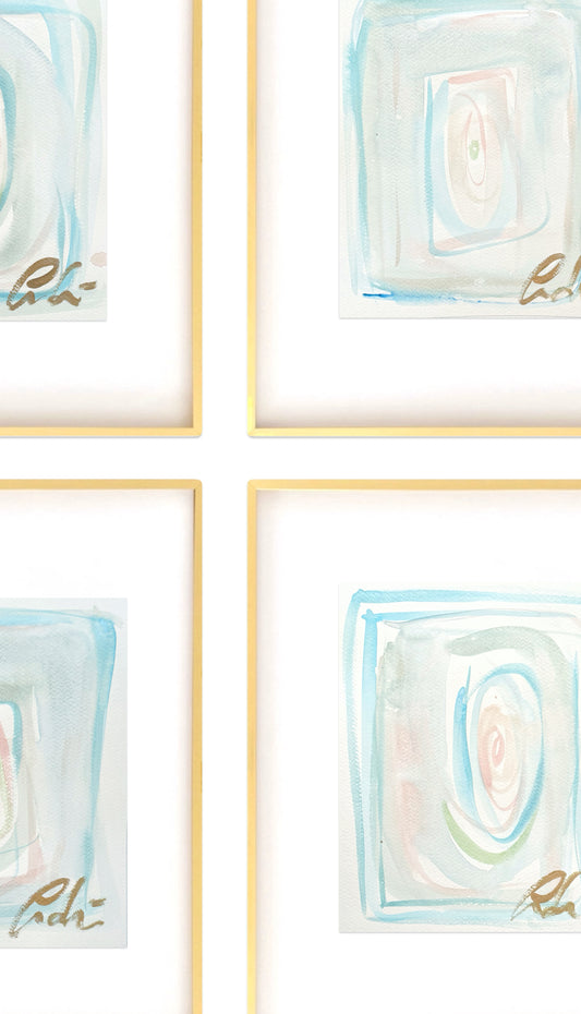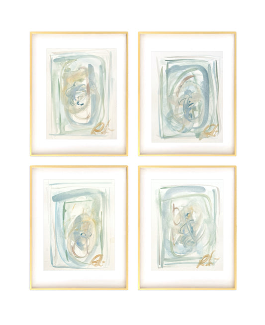 Set of Four Original Abstract Watercolor Paintings on Paper, 8x10