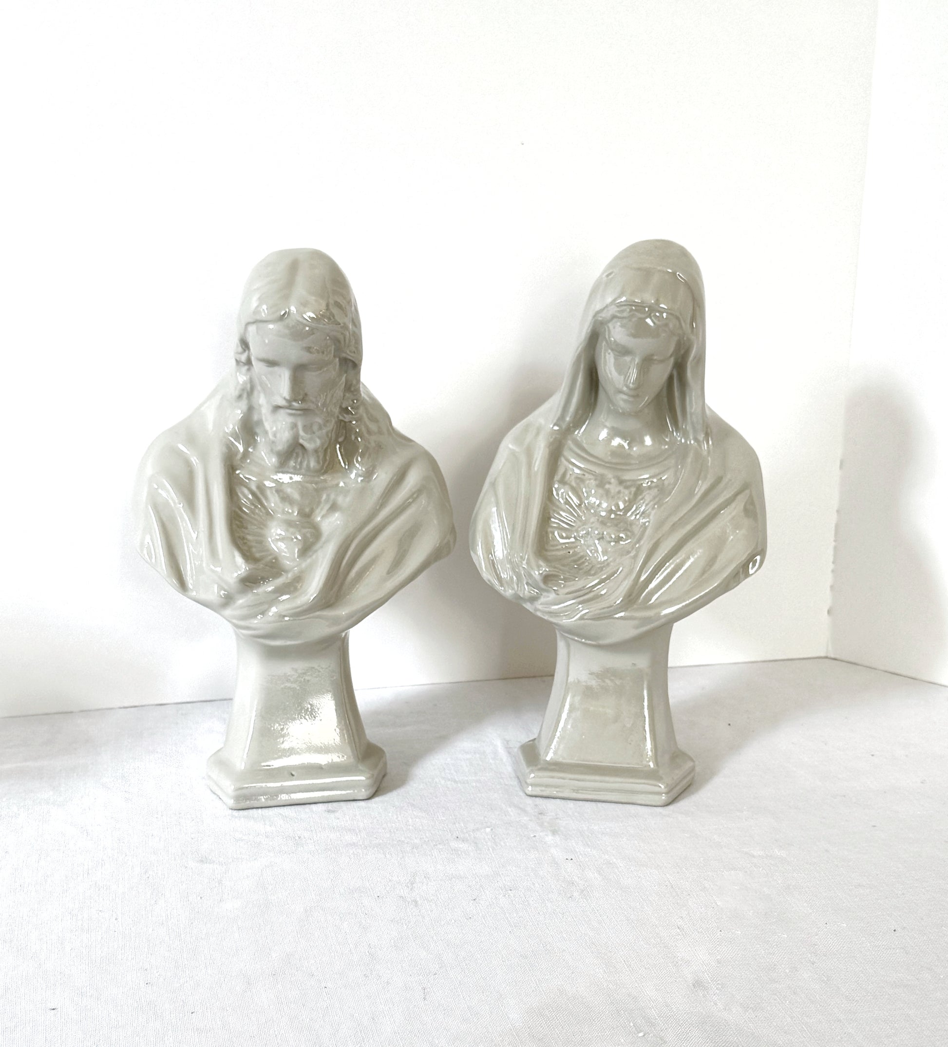 Iridescent Vintage Mary & Joseph Ceramic Sculptures