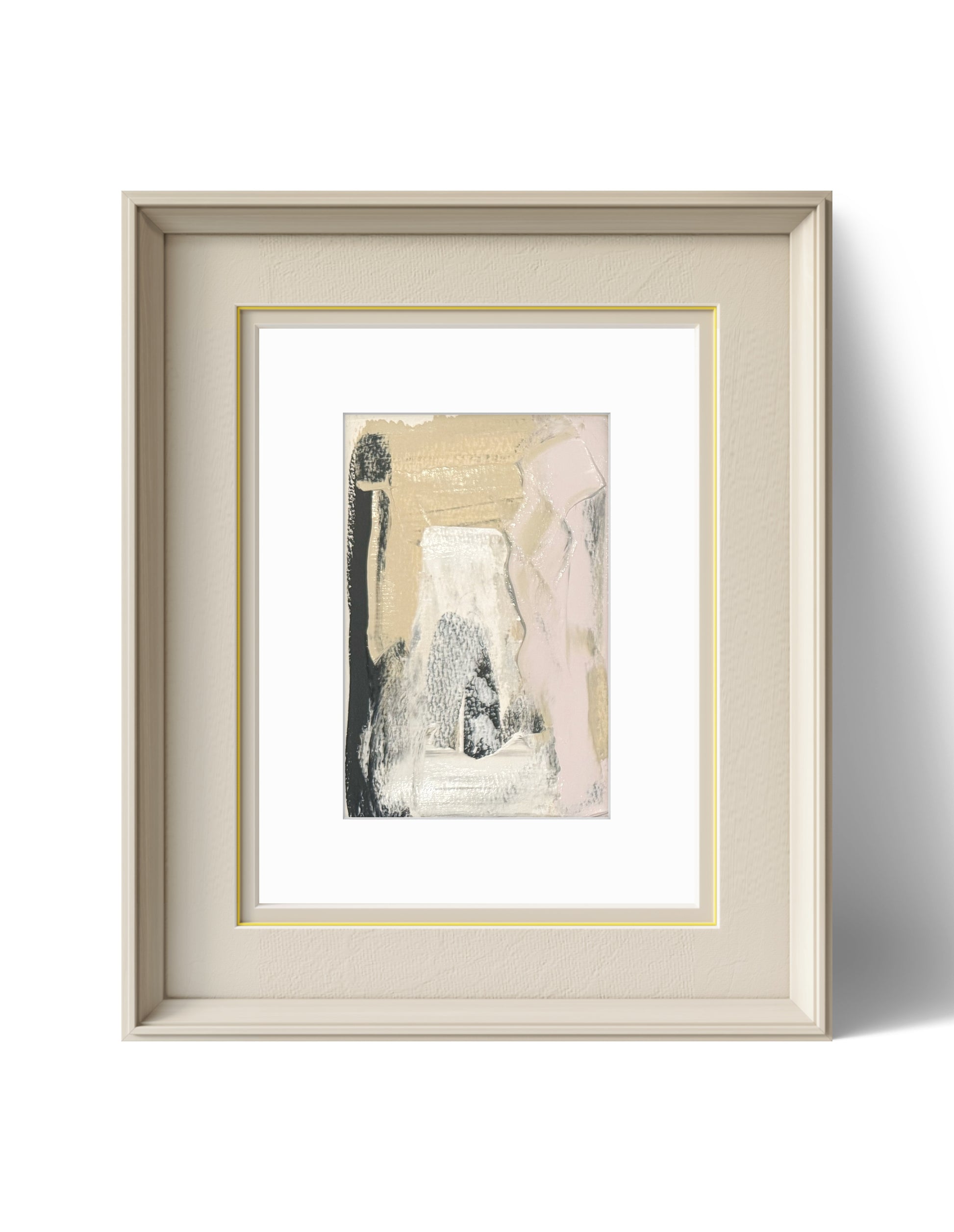 Elevate your space with this captivating original abstract fine art print from Luxe L'Atelier—a masterful blend of monochrome elegance and subtle warmth. Rendered in a sophisticated palette of deep blacks, crisp whites, earthy taupe, and delicate hints of blush pink, this 5x7-inch artwork captures the essence of modern minimalism with fluid, organic forms that evoke quiet introspection and timeless grace.