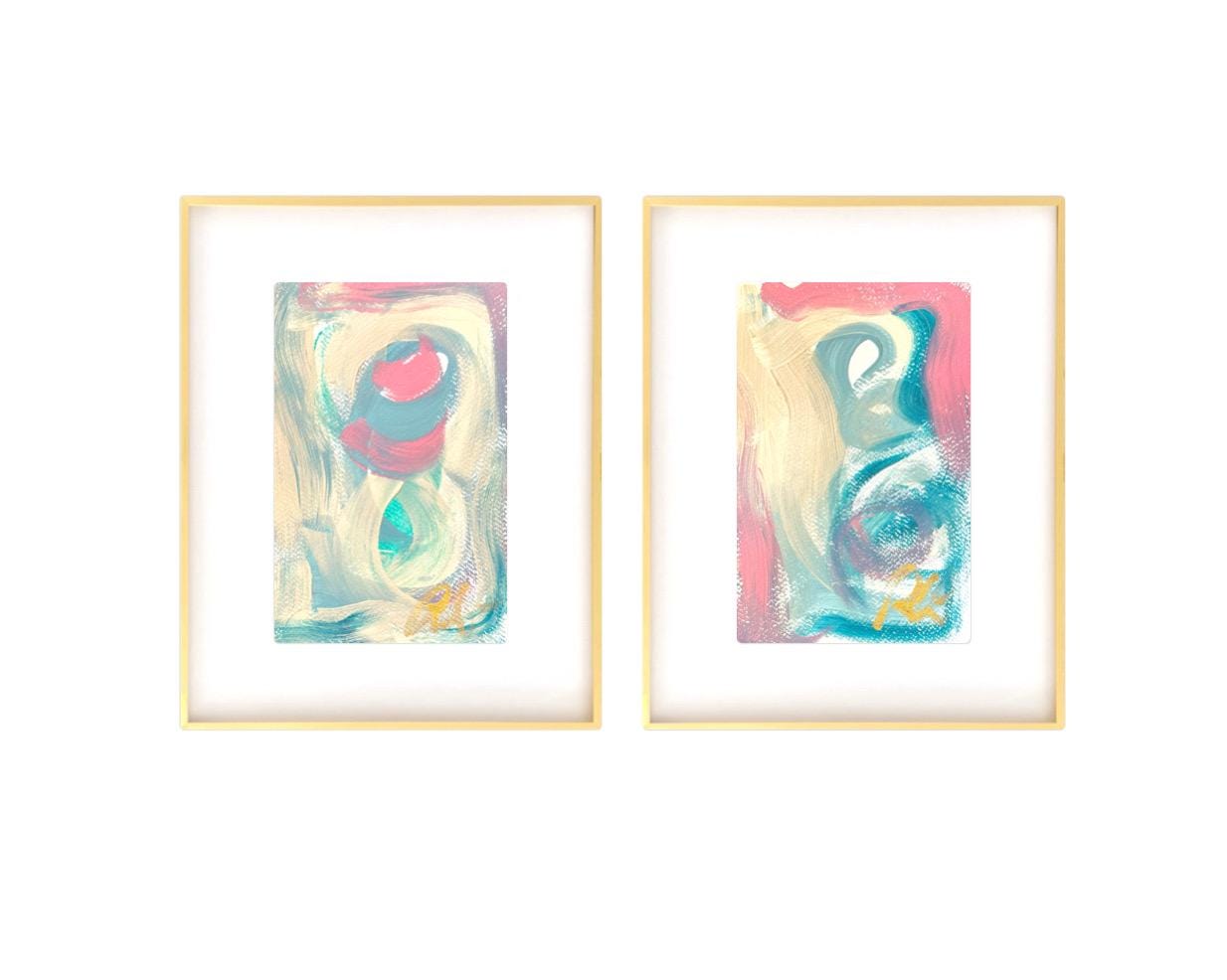 Original Abstract Fine Art Prints, Green, Pink, Blue, Pair (5x7), Abstract Artwork