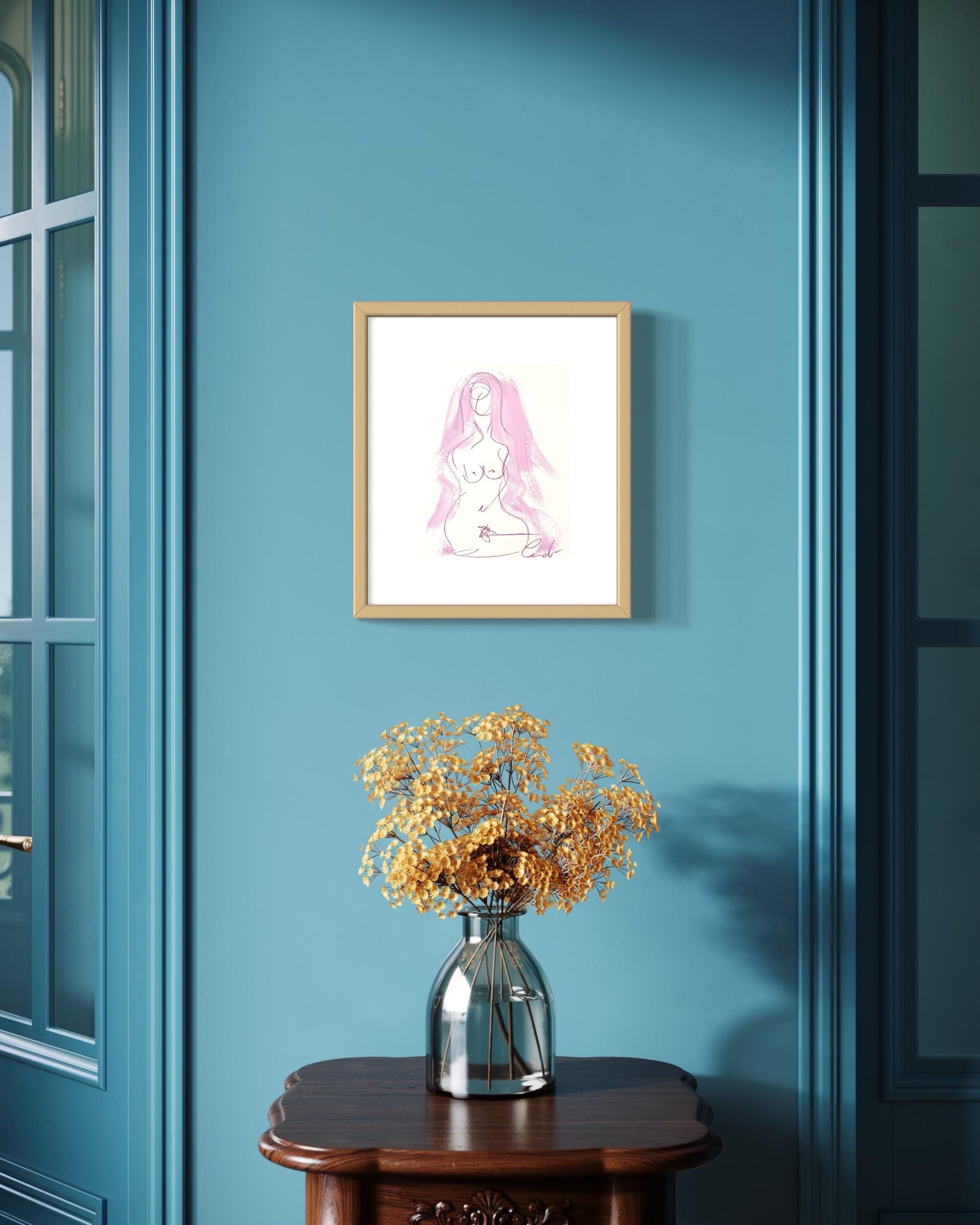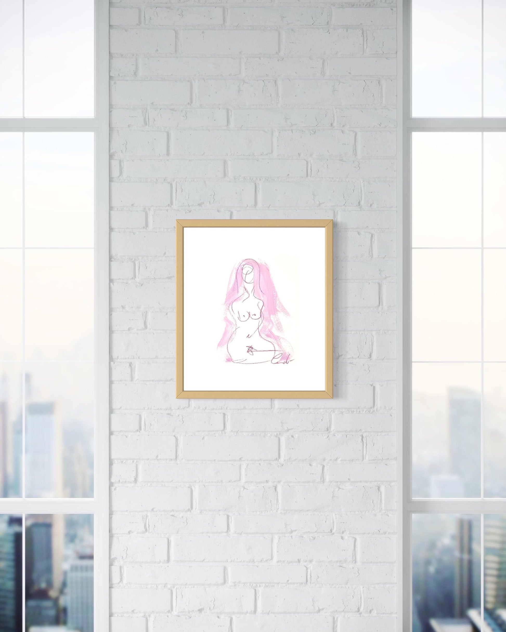 Original Abstract Watercolor Nude Female Painting, Digital Print, Digital Download, Pink, 8x10, “Farrah”, Abstract Artwork