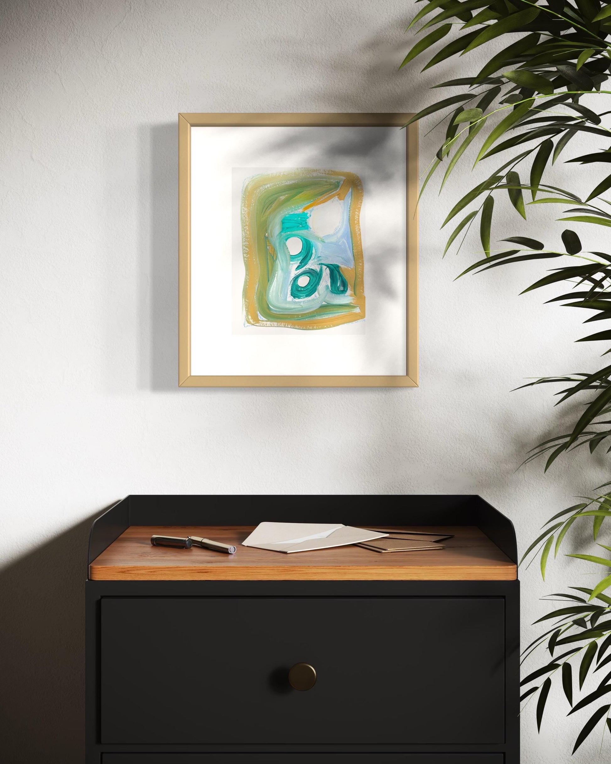 Original Abstract Watercolor Painting, Digital Print, Digital Download, Turquoise, Green, Yellow, 8x10, Abstract Artwork