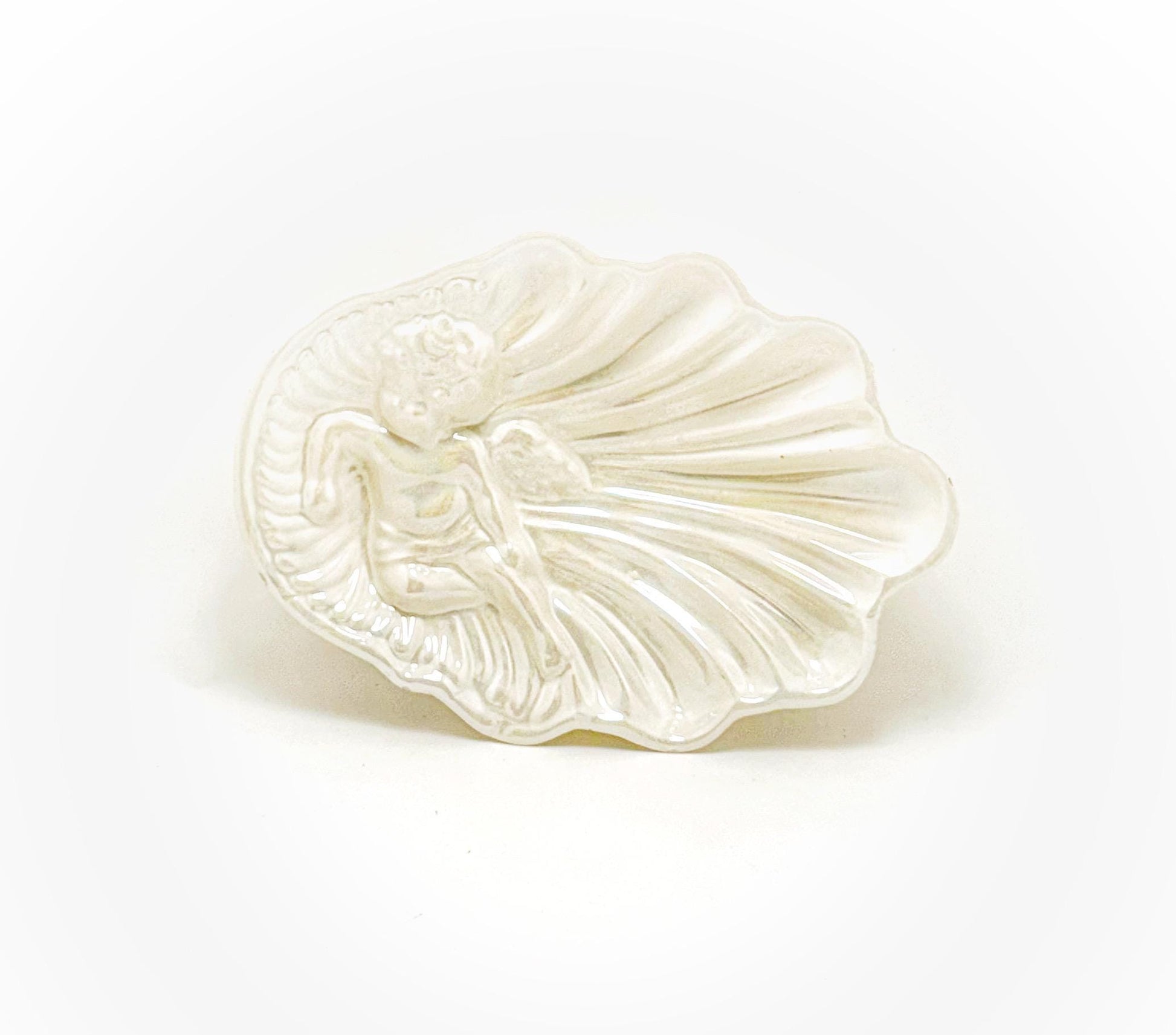 Vintage White Metallic Porcelain Angel Spoon Rest